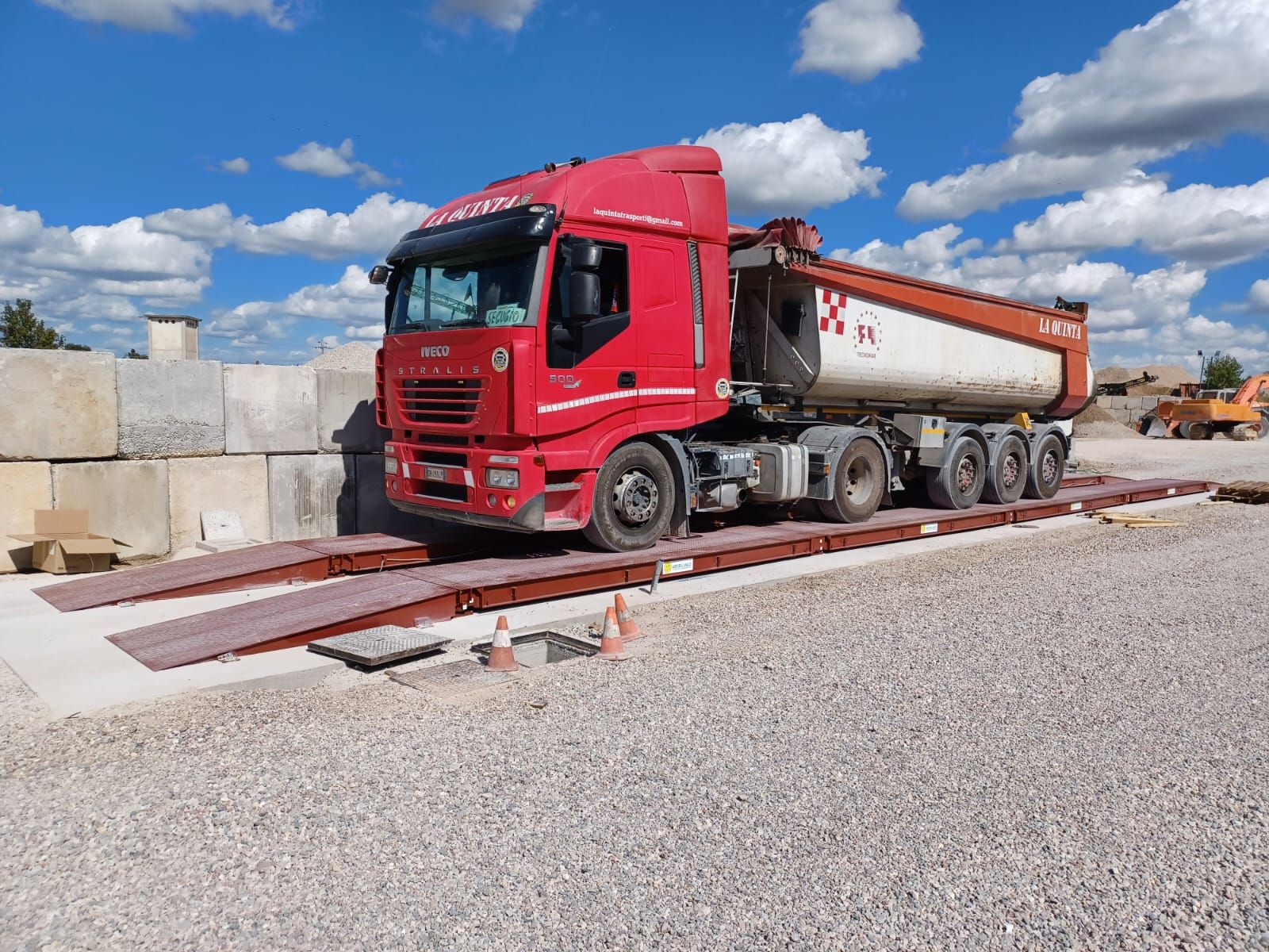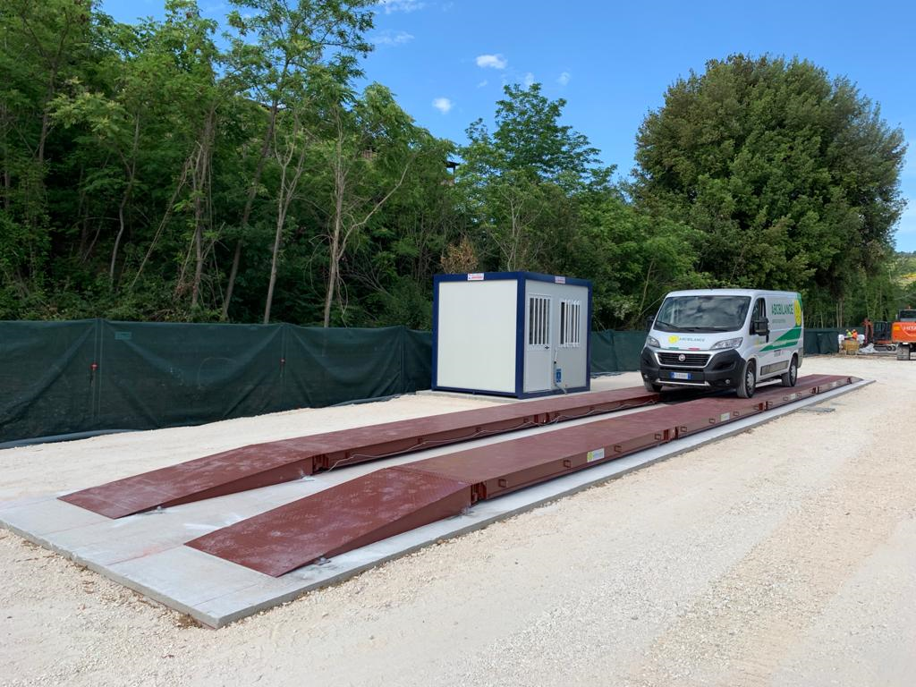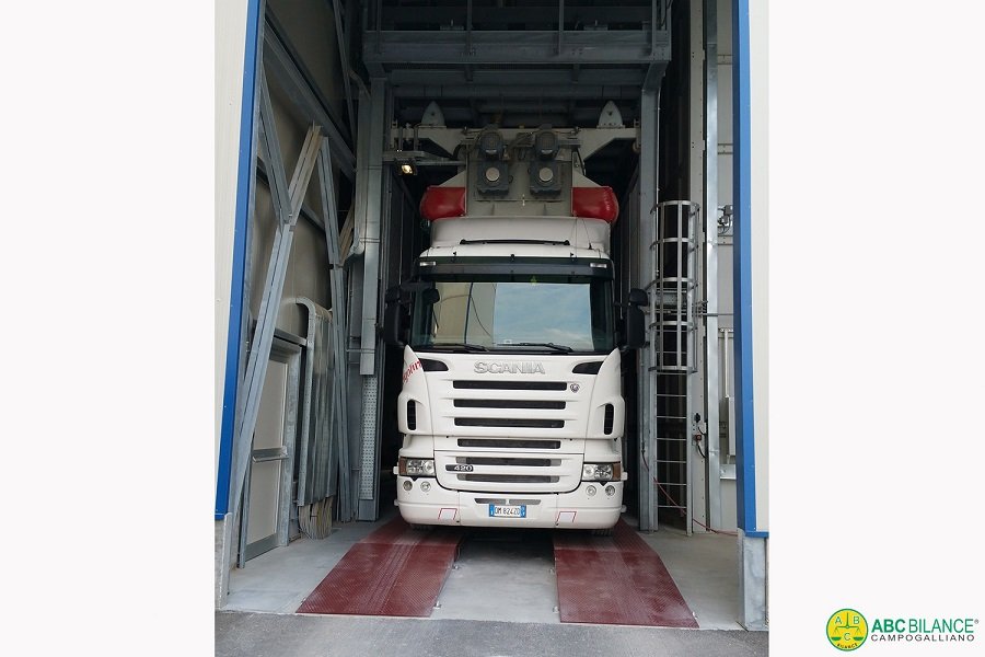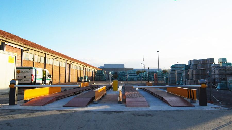 Pesa a ponte a doppia corsia, realizzata con materiali di alta qualità e facilmente trasportabile e spostabile all’interno dello stabilimento.